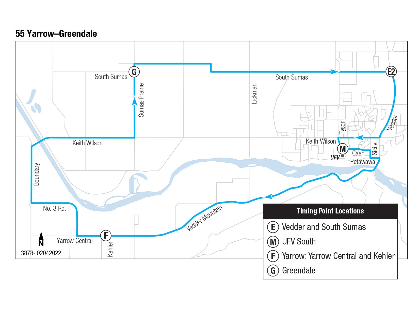 Vedder Rd at South Sumas Rd UFV Chilliwack Campus Yarrow: Yarrow Central Rd at Kehler St Greendale Vedder Rd at South Sumas Rd UFV Chilliwack Campus