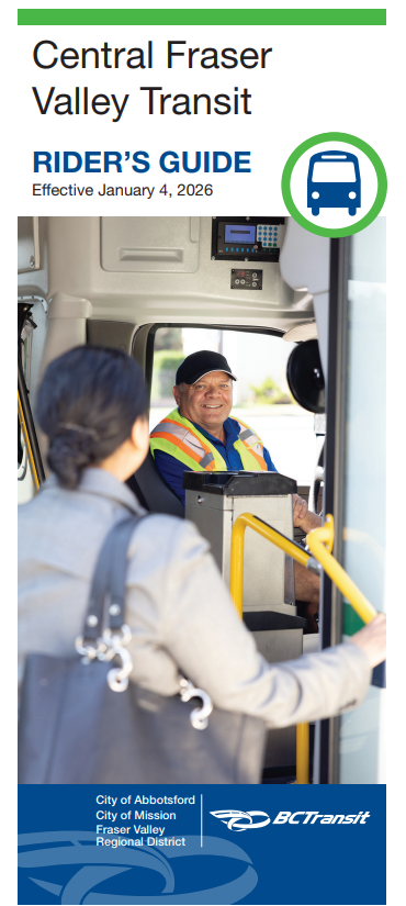 - Rider’s Guide: Find schedules, maps, and transit information in this handy guide. Pick one up on board or through your local BC Transit office.
