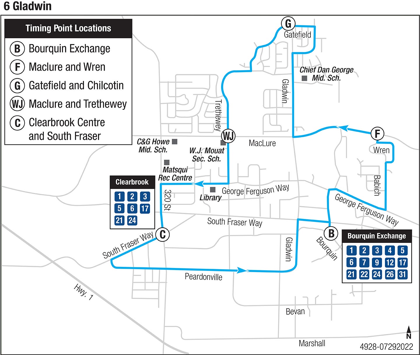 Bourquin Exchange Babich St at Maclure Rd Chilcotin Dr at Gladwin Rd Maclure Rd at Trethewey St South Fraser Way at Clearbrook Rd Bourquin Exchange