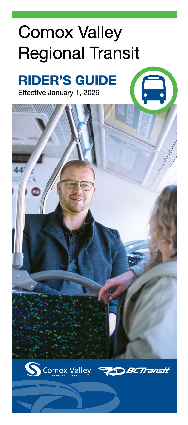Rider’s Guide: This handy guide lists route schedules, maps and other important transit information. Available on board or contact your local BC Transit system.