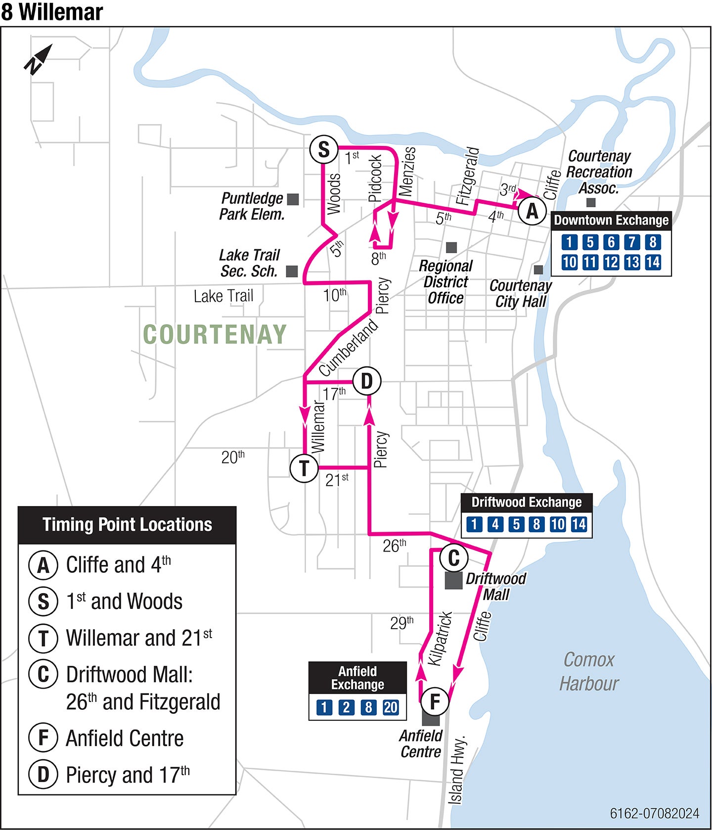 Downtown: Cliffe at 4th St 1st at Woods Willemar at 21st St 26th at Fitzgerald (Driftwood Mall) Anfield Centre
