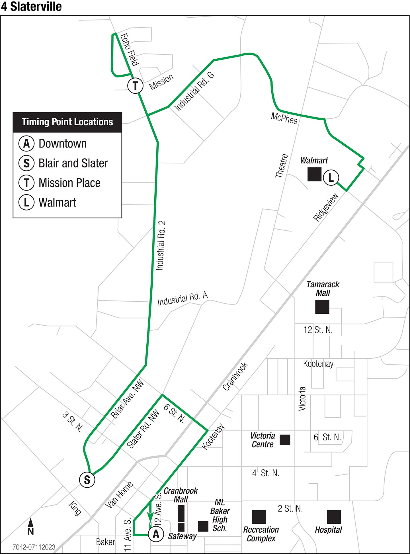 Route Via Downtown: 12 Ave. S. at Baker Briar at Slater Mission Place Walmart