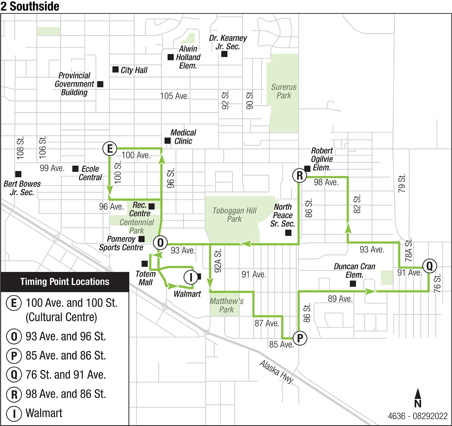 Route Via 100 Ave at 100 St 93 Ave at 96 St 85 Ave at 86 St 76 St at 91 Ave 98 Ave at 86 St Walmart 100 Ave at 100 St