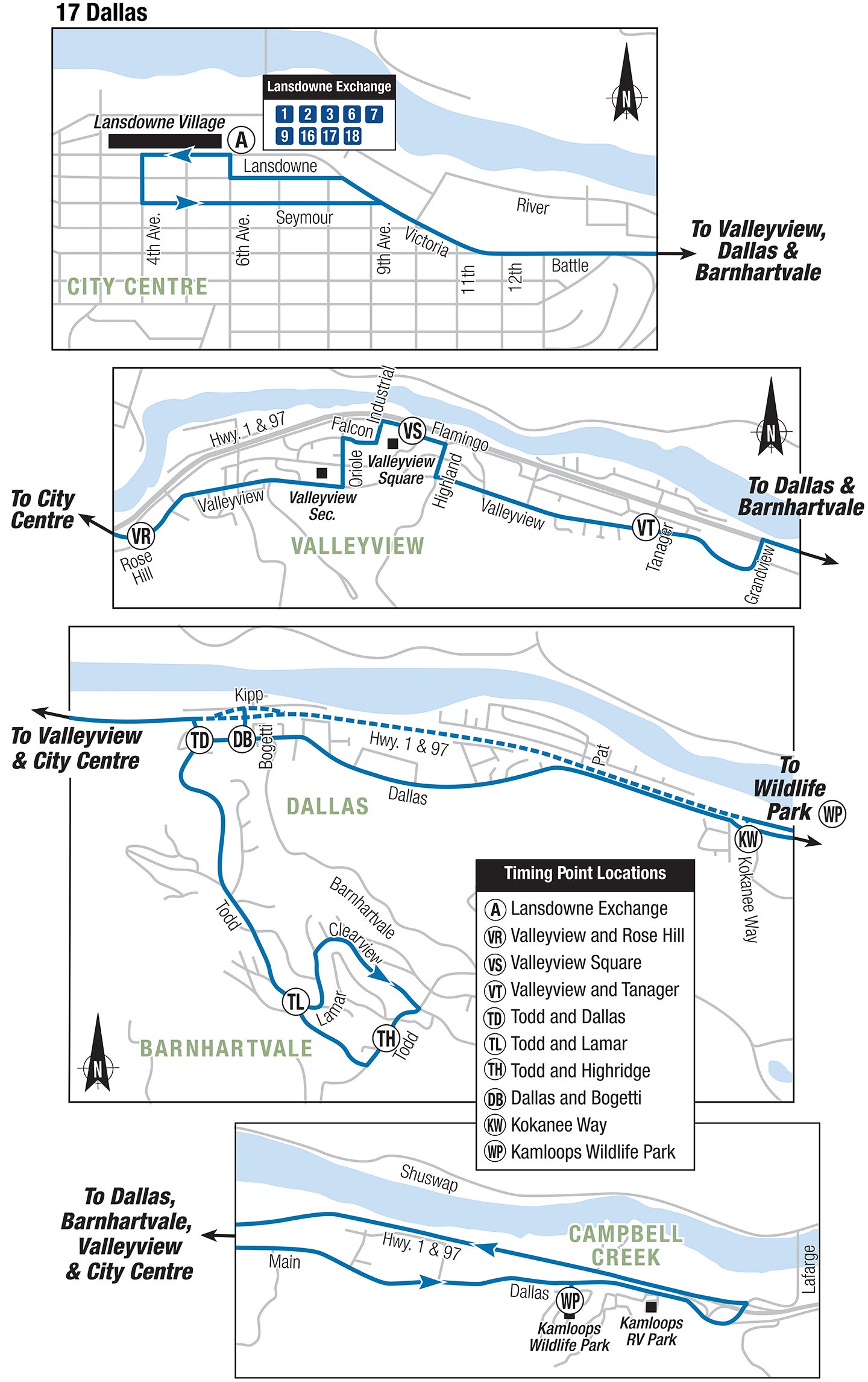 Trip Notes Lansdowne Exchange Valleyview Dr at Rose Hill Rd Valleyview Square Valleyview Dr at Tanager Dr Todd Rd at Dallas Dr Todd Rd at Lamar Dr Todd Rd at Pringle Rd Dallas Dr at Bogetti Rd Kokanee Way BC Wildlife Park
