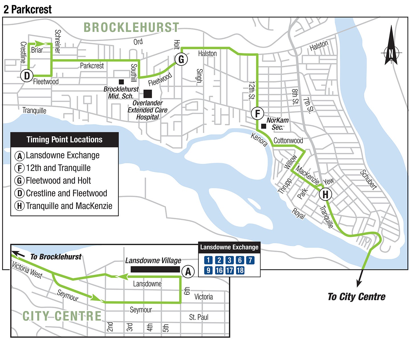 Trip Notes Crestline St at Fleetwood Ave Fleetwood Ave at Holt St 12th St at Tranquille Rd Tranquille Rd at MacKenzie Ave Lansdowne Exchange North Shore Exchange