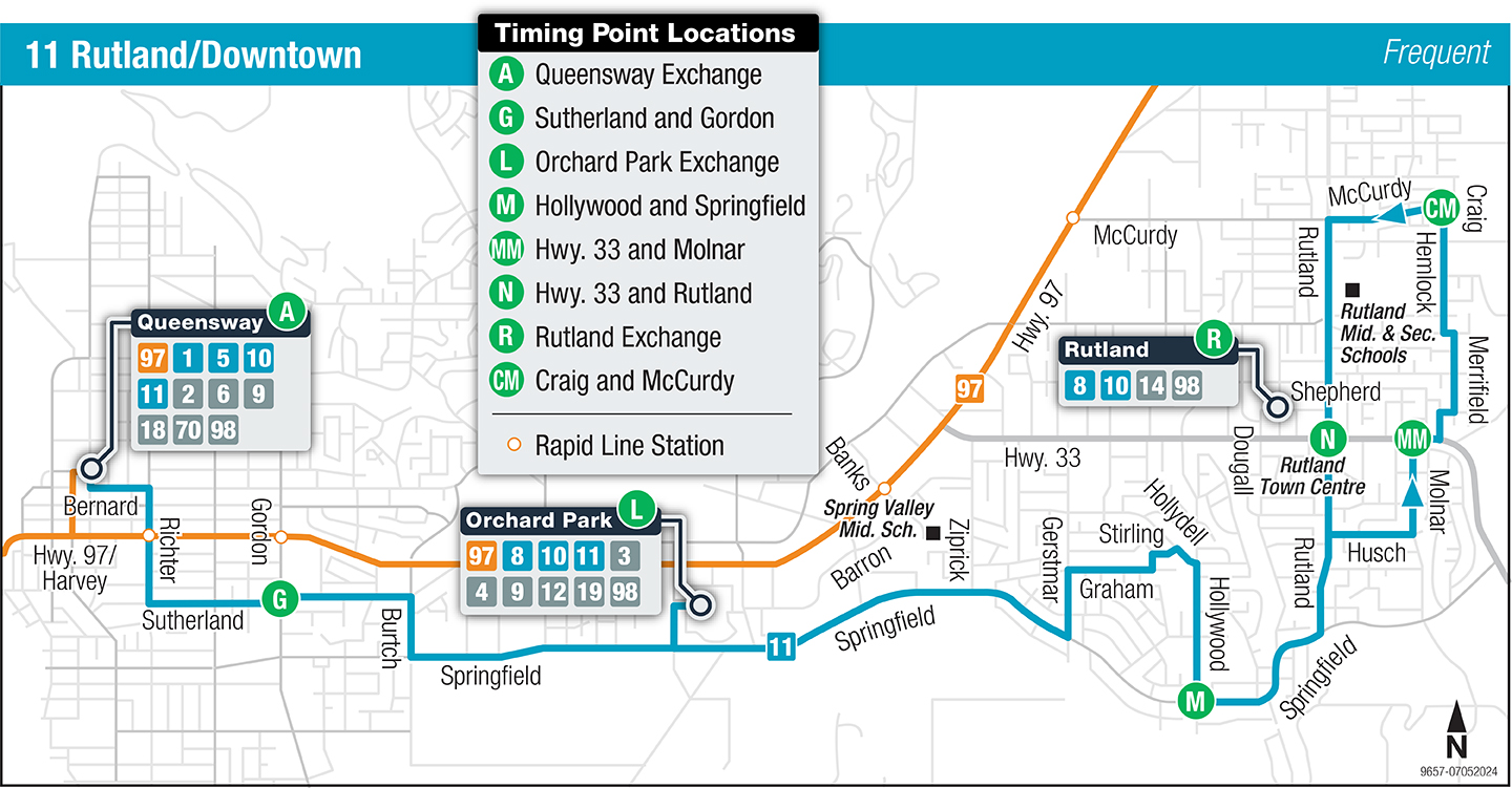 Trip Notes McCurdy and Craig Hwy. 33 and Rutland Hollywood and Springfield Orchard Park Mall Orchard Park Mall Sutherland and Gordon Queensway Transit Exchange