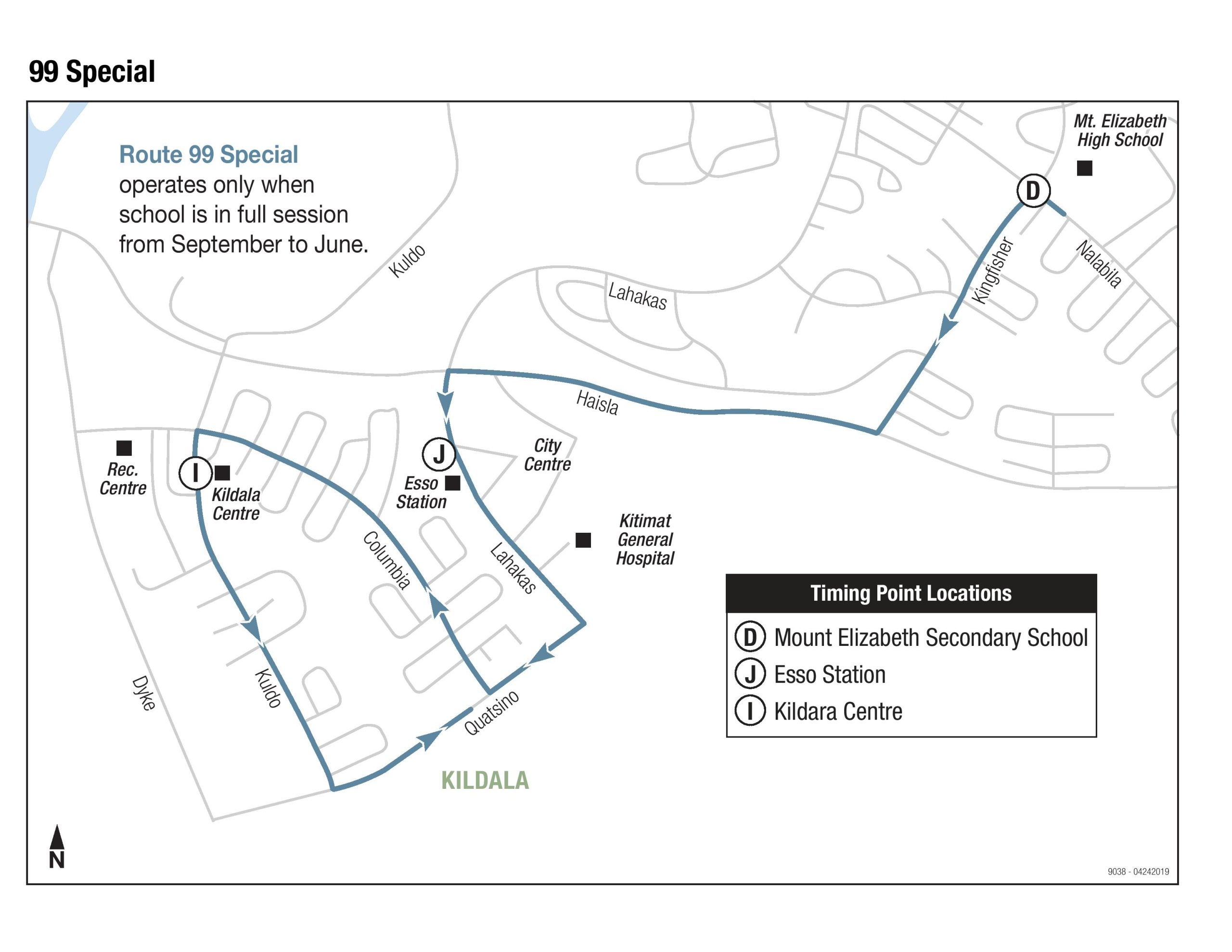Route Via Trip Notes Kitimat City Centre Mt. Elizabeth Secondary Mt. Elizabeth Secondary Esso Kildala Centre Kitimat City Centre