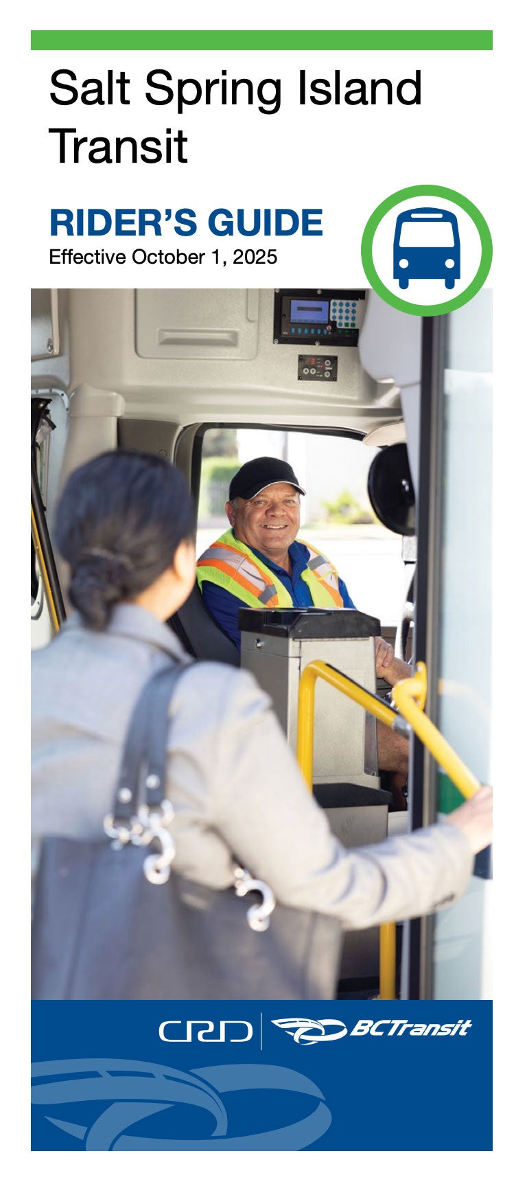Rider’s Guide: This handy guide lists route schedules, maps and other important transit information. Available on board or contact your local BC Transit system.