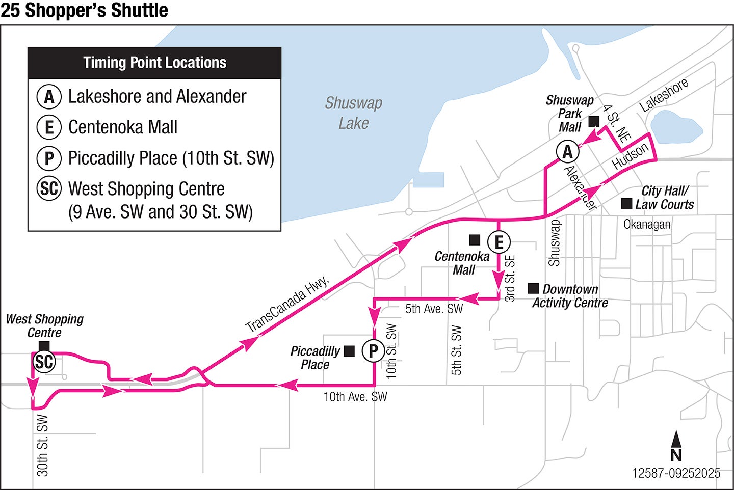 Trip Notes Salmon Arm: Lakeshore and Alexander Centenoka Mall Piccadilly Place: 10th St Southwest West Shopping Centre (9Av at 30St SW) Salmon Arm: Lakeshore and Alexander