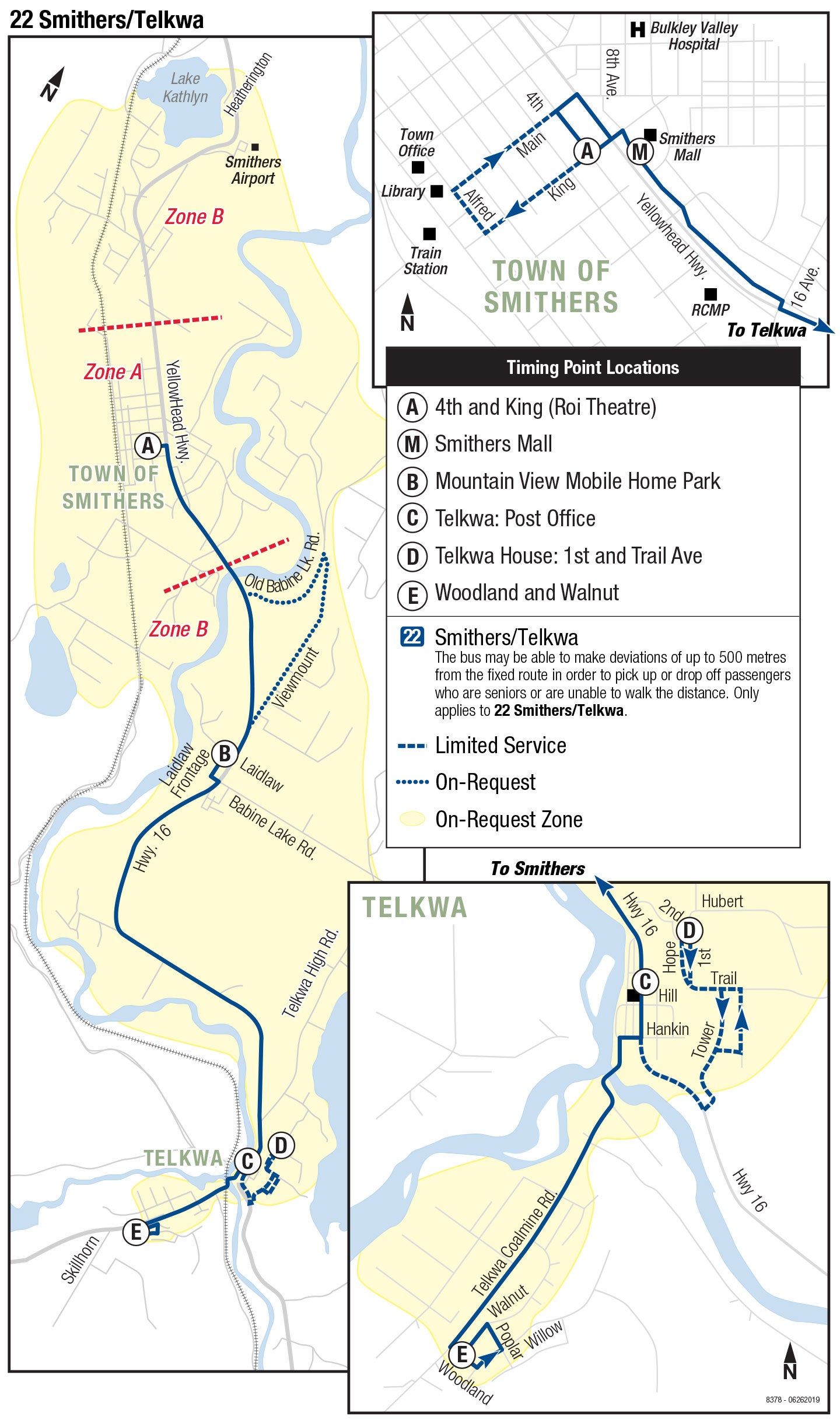 K - Trip travels via King St.,along Alfred, down Main St. 4th Ave. to Downtonw Smithers:( Roi Theatre )