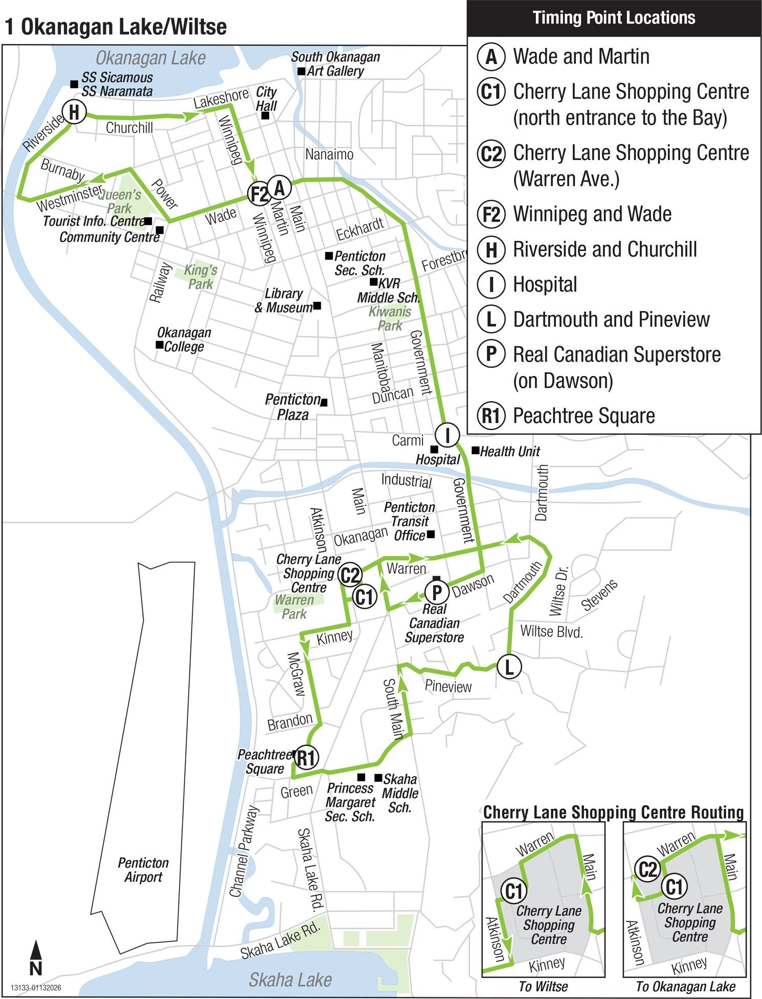 Route Via Trip Notes Peachtree Square Dartmouth and Pineview Real Canadian Superstore (on Dawson) Cherry Lane Shopping Centre (Warren Ave) Penticton Reg. Hospital (on Government) Wade and Martin Riverside and Churchill