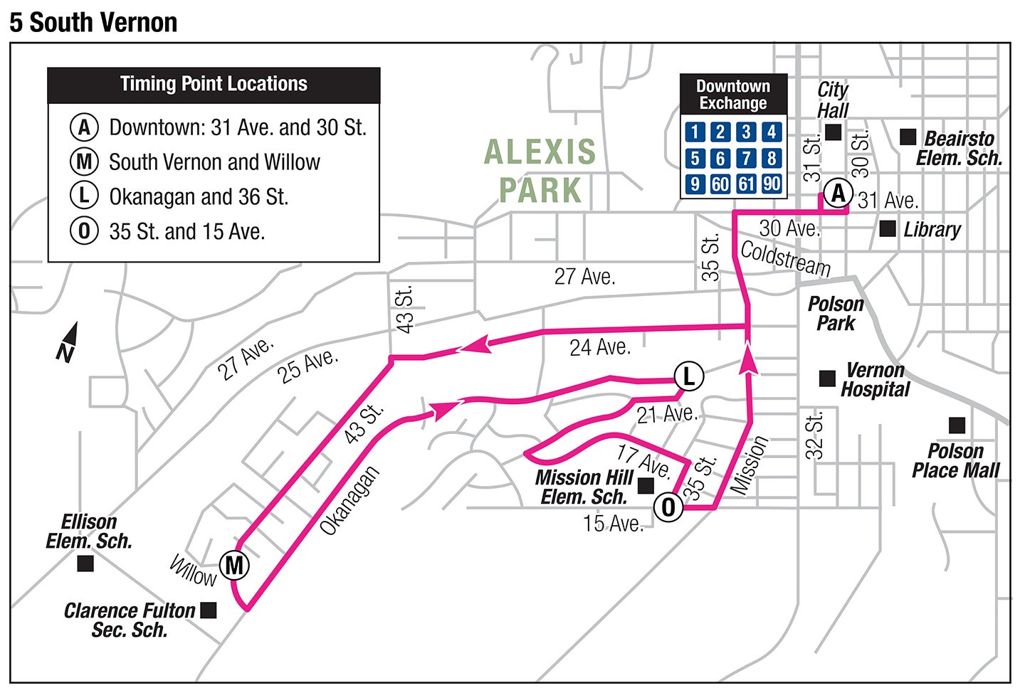 Downtown: 31 Ave. and 30 St. South Vernon at Willow Okanagan Ave at 36 Str. 35 St at 15 Av Downtown: 31 Ave. and 30 St.