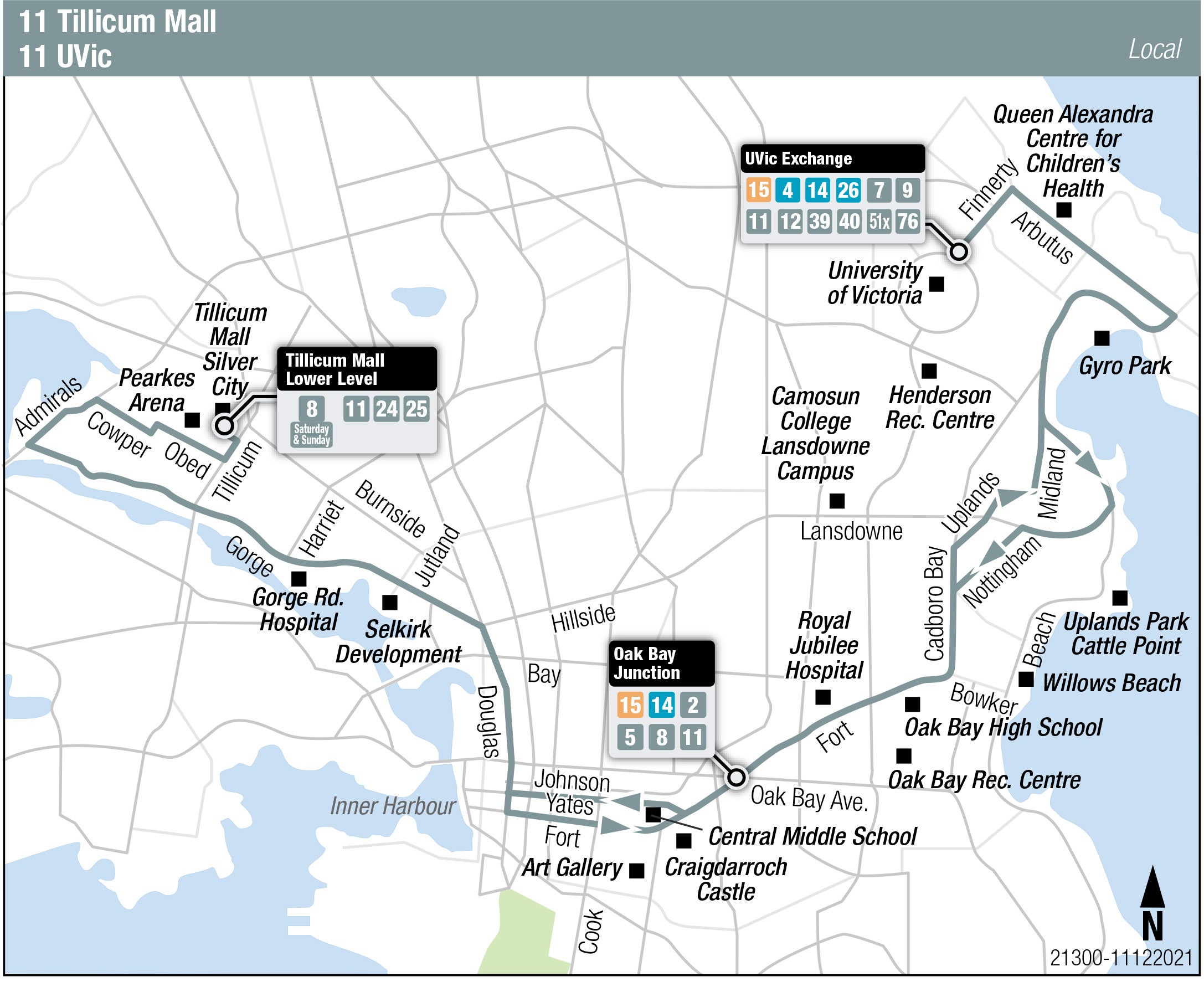 Tillicum Centre - Lower Level Gorge Rd W at Tillicum Rd Gorge Rd E at Garbally Rd Fort St at Douglas St Oak Bay Junction Cadboro Bay Rd at Sinclair Rd UVic Exch