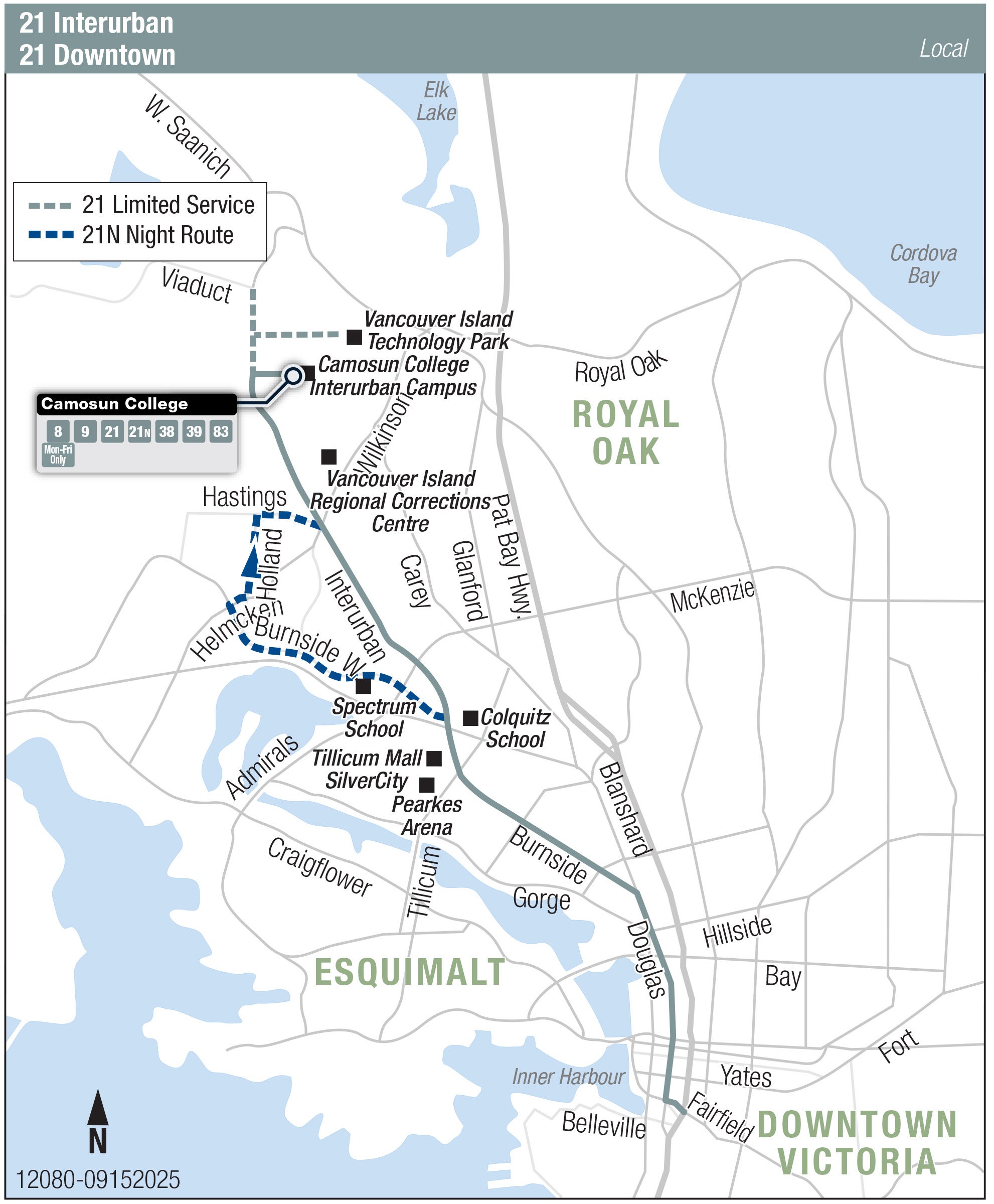 Y - Trip operates only when Camosun College is in Fall or Winter session.