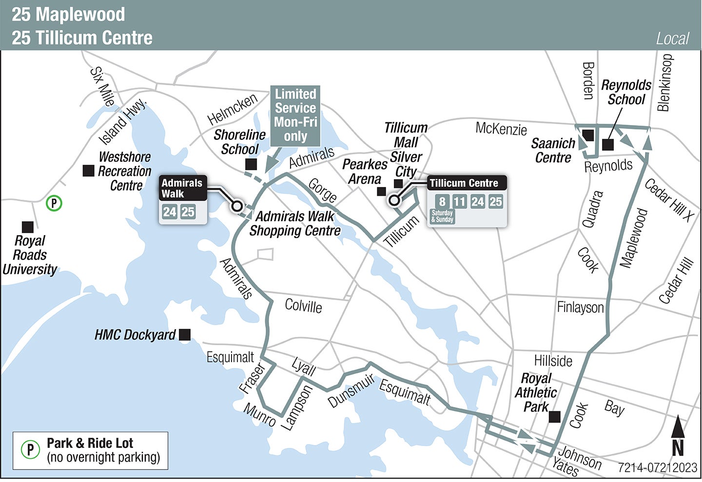 Tillicum Centre - Upper Level Admirals Walk Shopping Centre Admirals Rd at Esquimalt Rd Dunsmuir Rd at Head St Johnson St at Broad St Cook St at Hillside Ave Borden St at McKenzie Ave