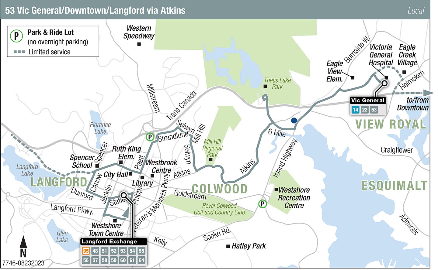 Victoria General Hospital Thetis Lake Parking Lot Atkins Ave at Selica Rd Goldstream Ave at Strathmore Rd West end of Goldstream Ave Langford Exch