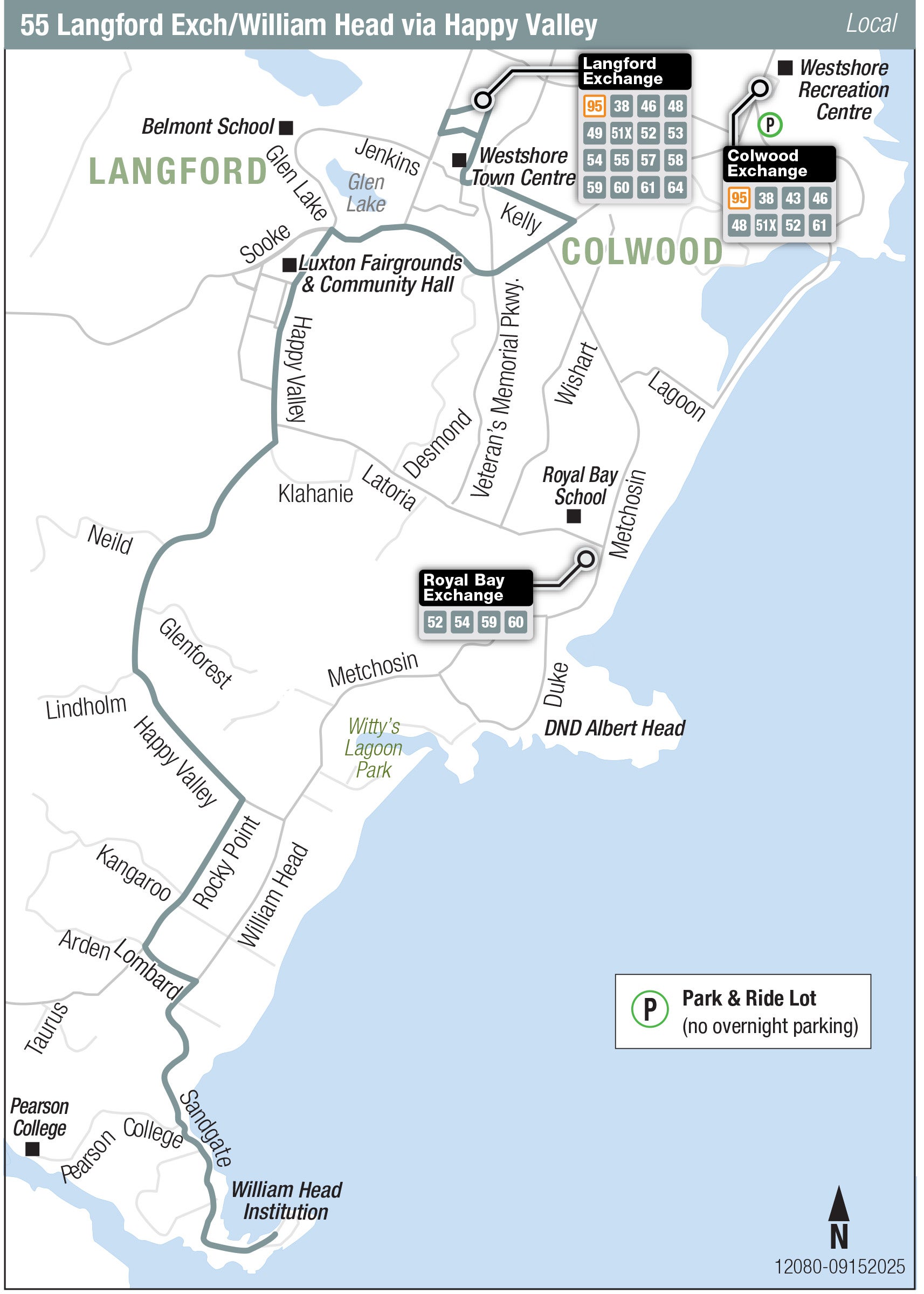 Langford Exch Sooke Rd at Jacklin Rd Happy Valley Rd at Latoria Rd Happy Valley Rd at Rocky Point Rd William Head Institution