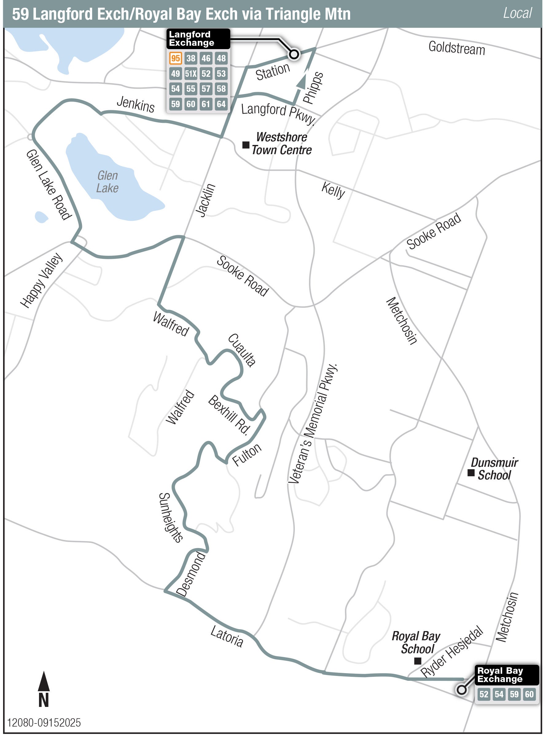 Direction:  to Langford Exch via Triangle Mountain to Royal Bay Exch via Triangle Mountain