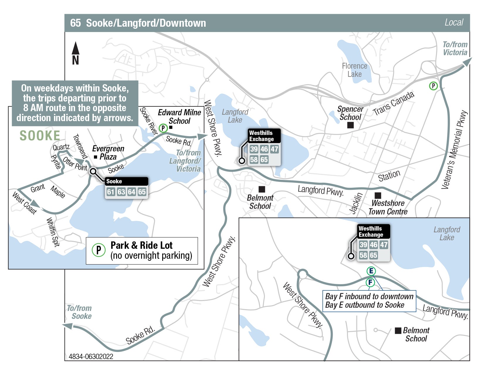b - Trip starts at Sooke River Rd Park & Ride 7 minutes earlier.