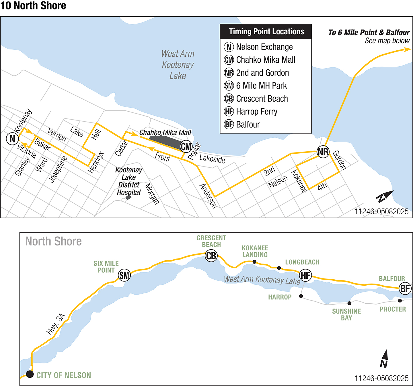Route Via Nelson Exchange Chahko Mika Mall 2nd and Gordon 6 Mile MH Park Crescent Beach Harrop Ferry Balfour Ferry