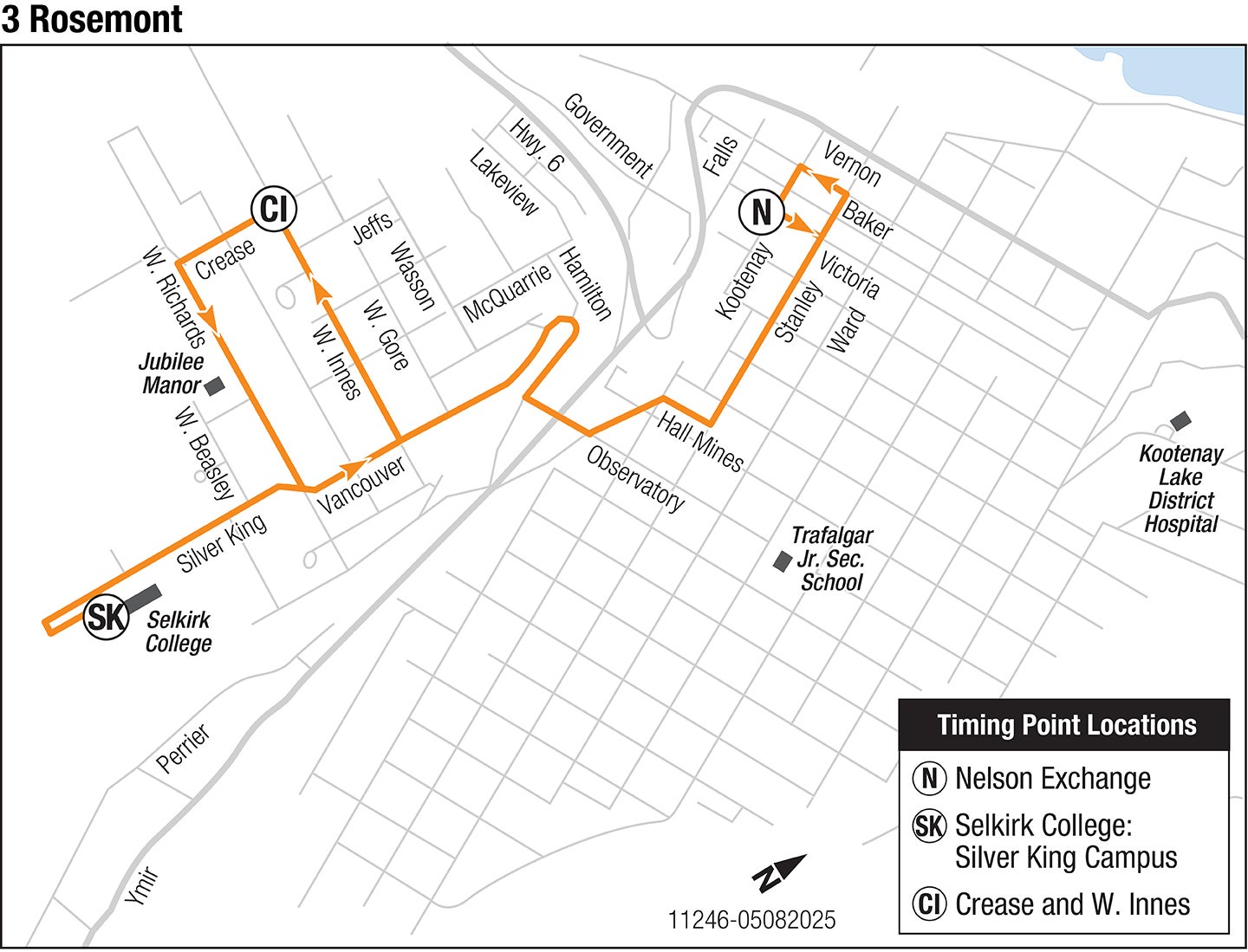 C - Combined routing: Trip departs from Nelson Exchange as 3 Rosemont, and continues as 1 Uphill.